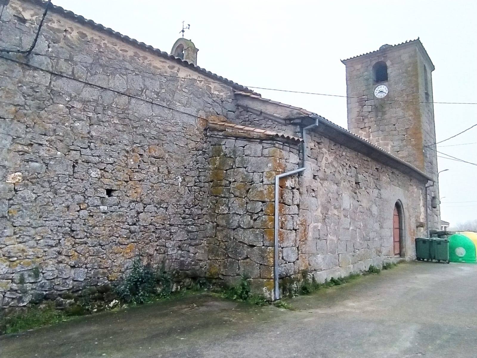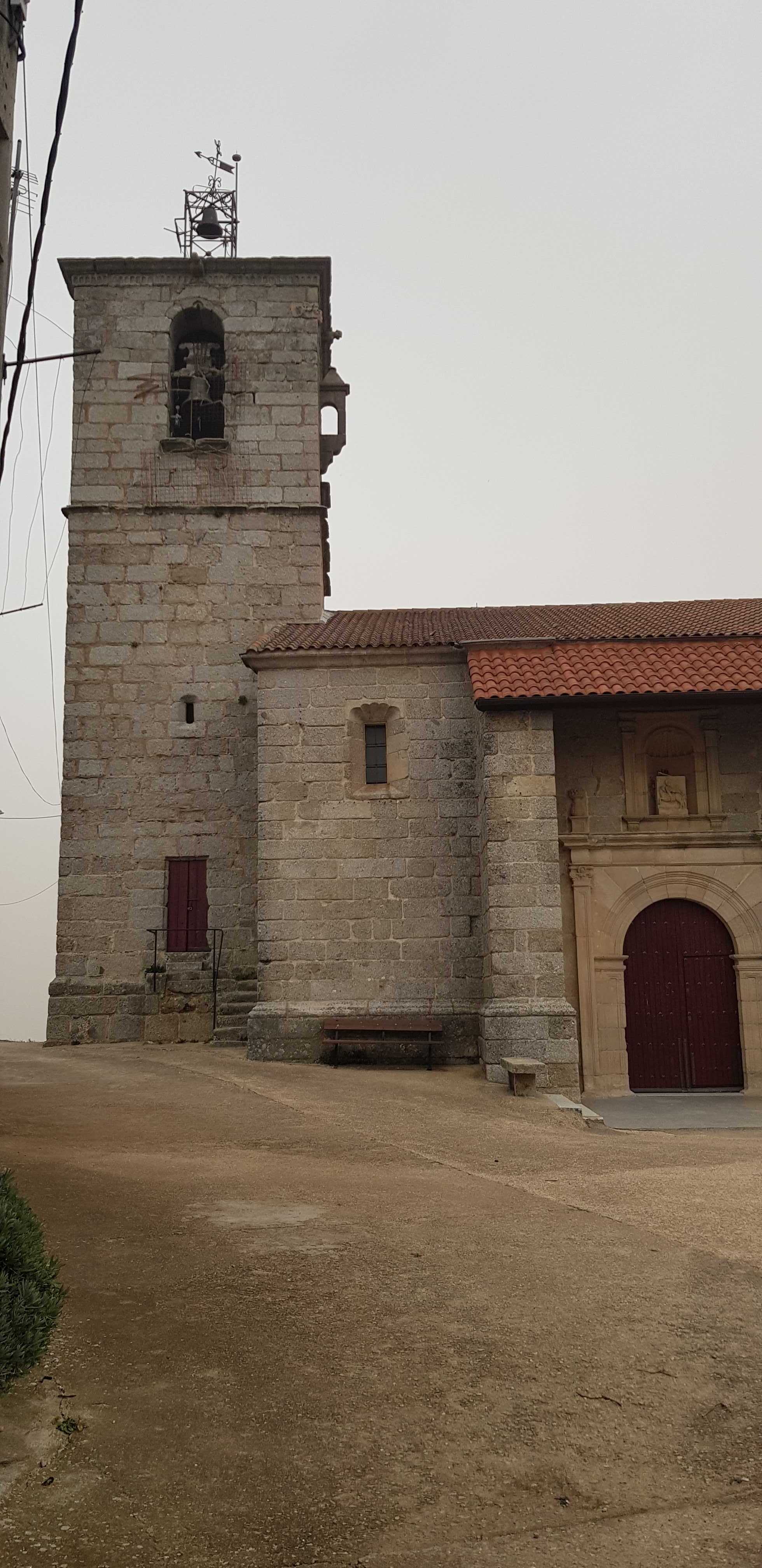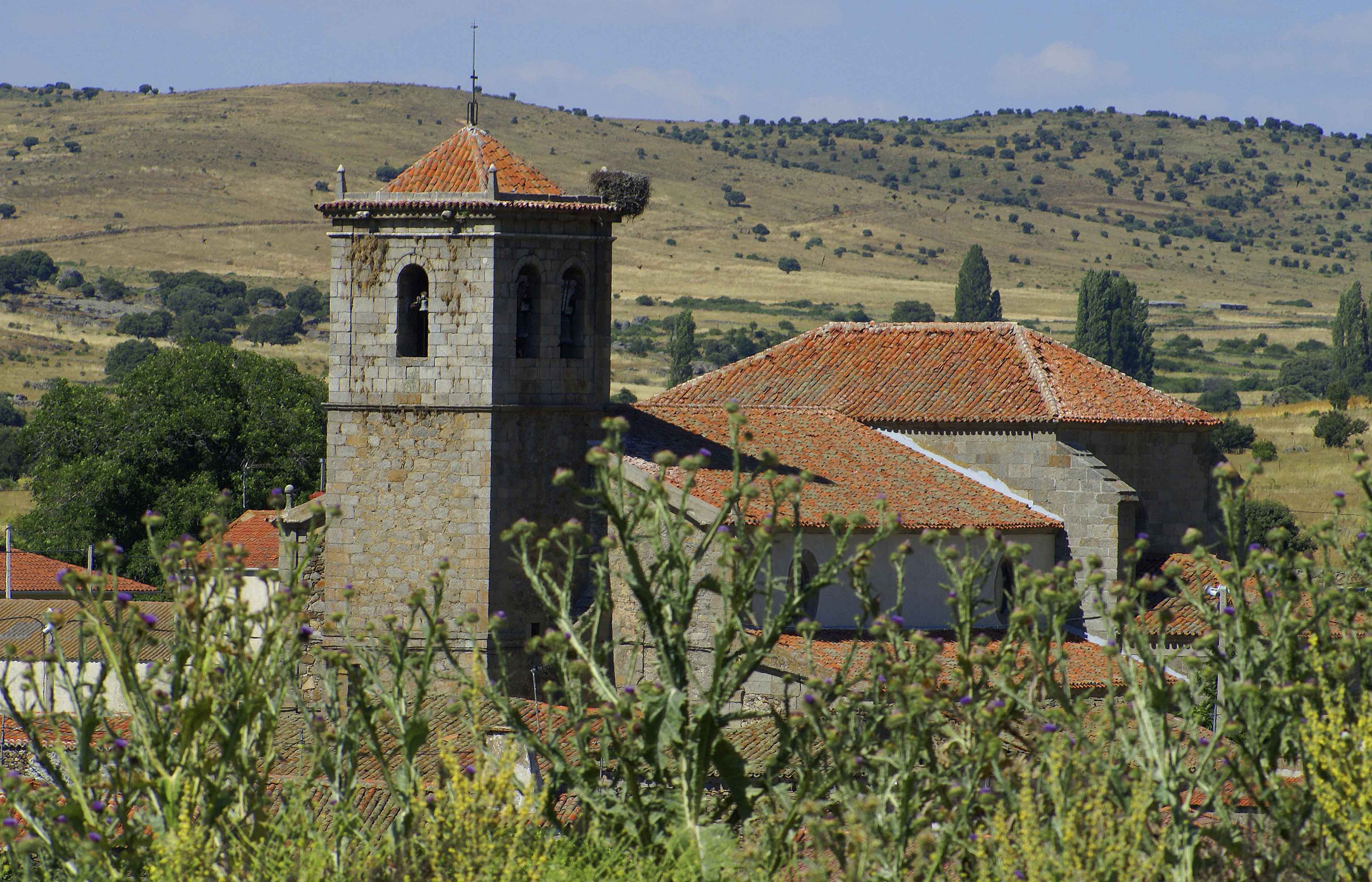 Bajo la advocación de San Miguel Arcángel, edificio de varios estilos, si bien predomina el románico. Está construida en granito con las esquinas de sillería y contrafuertes en la cabecera. La planta es de cruz latina con la torre-campanario a los pies, y antecedida de un pórtico. La iglesia comenzó a construirse en el siglo XIII, y en el transcurso de su construcción recibió influencia de otros estilos arquitectónicos: La portada pertenece al románico de transición, con pórtico cubierto. El interior es gótico dividido en dos partes por un gran arco apuntalado. El presbiterio, de estilo gótico, más rico y monumental, está cubierto por una bóveda de nervadura construida en el siglo XVI, y el resto más pobre con arcos pero sin bóvedas.
